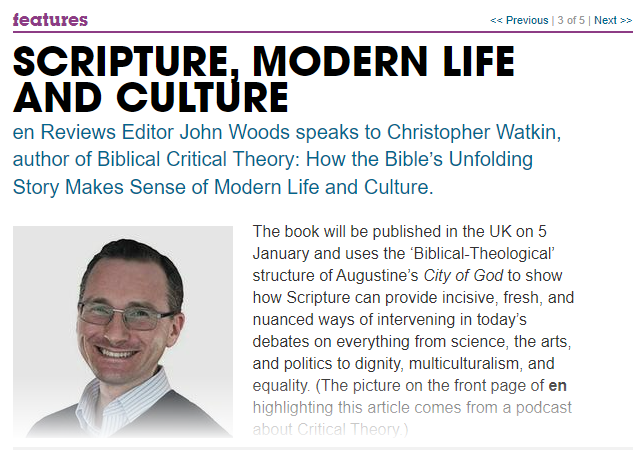 There’s an interview with me in the December 2022 edition of Evangelicals Now, focusing on Biblical Critical Theory. Thank you to John Woods for a wonderfully constructive and probing conversation.