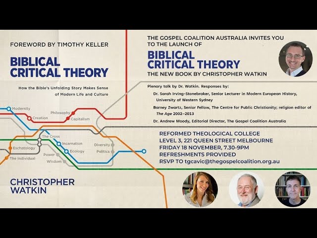 Here is a full version of the Melbourne launch of Biblical Critical Theory (18 November 2022), posted on the Gospel Coalition Australia channel.